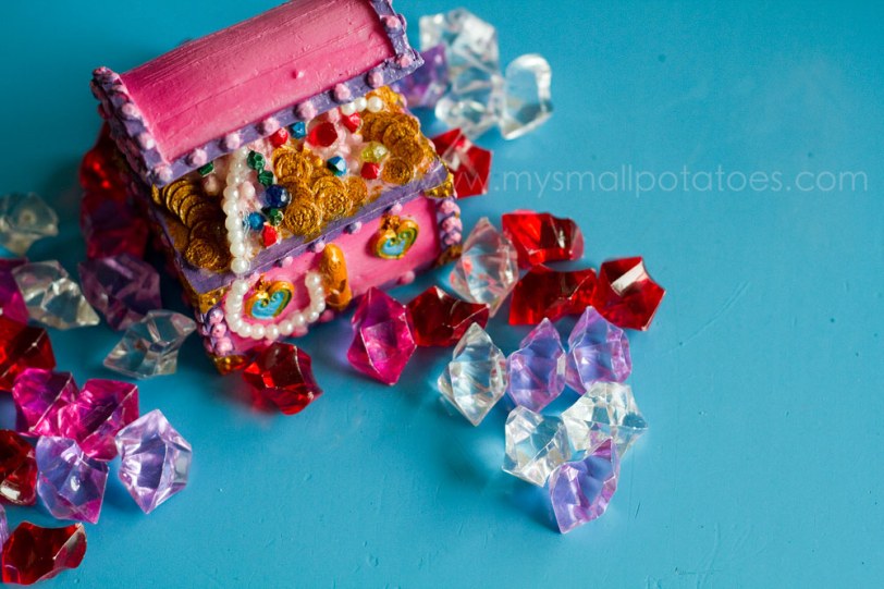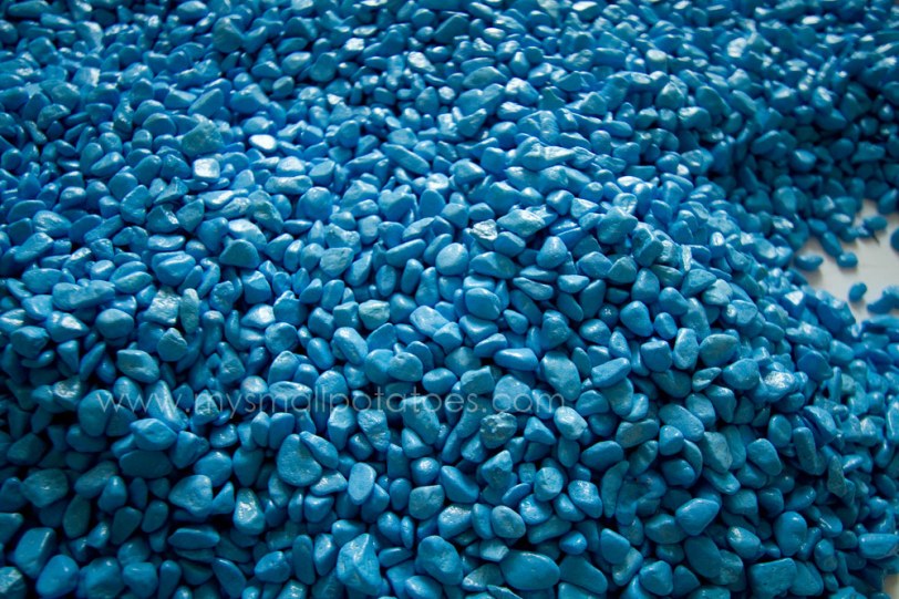 Of course every mermaid lagoon needs jewels and a treasure chest. I purchased the acrylic jewels and the treasure chest in the fish section of the pet store. Both amounted to about $8…