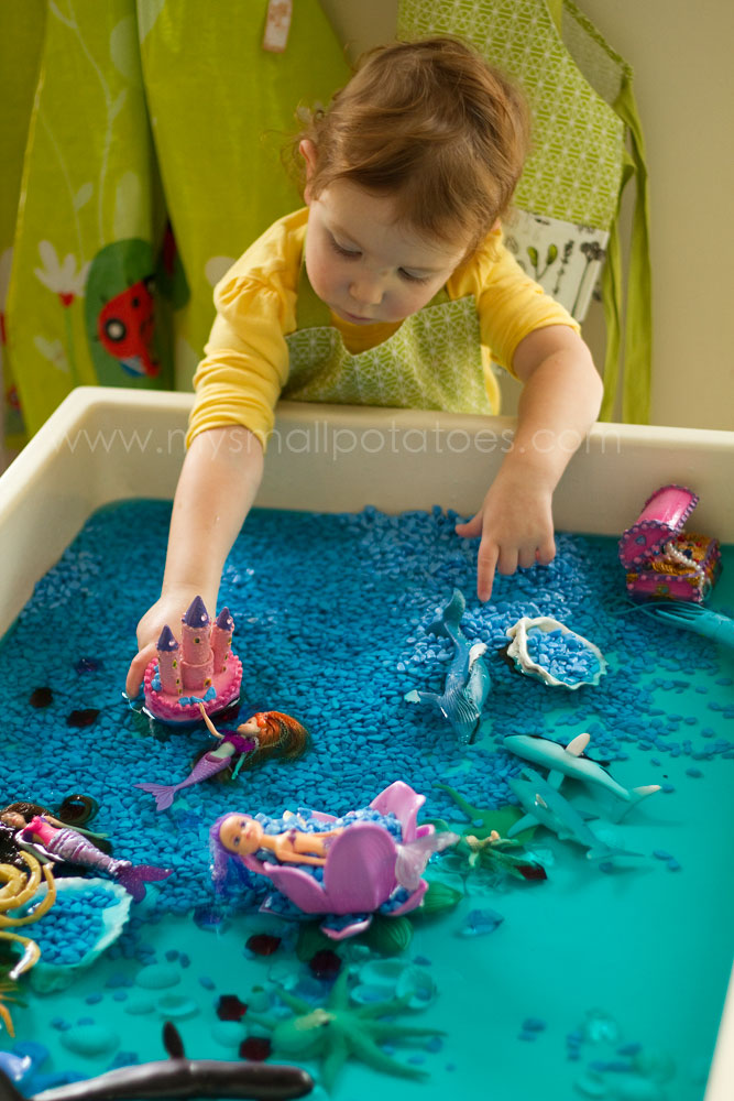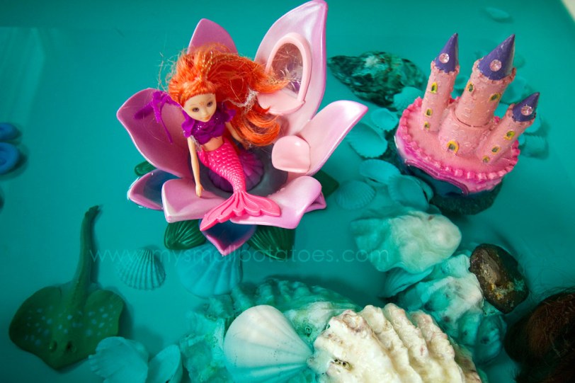 To say our Mermaid’s Lagoon was successful would be an understatement. I encourage all of you who have little girls in your world, to make one for them. It doesn’t have to be big. You could use a plastic bin, your sink, or your bathtub. I promise you won’t regret it.