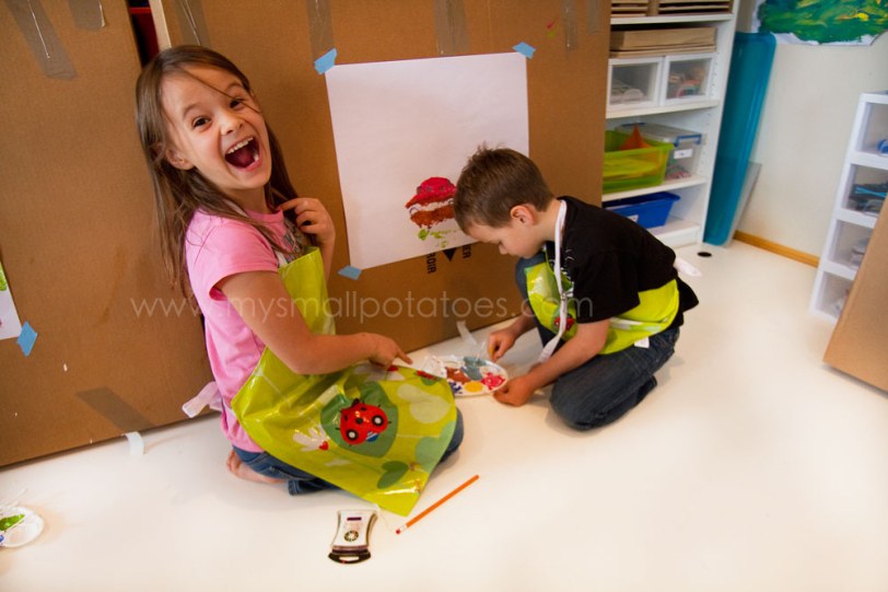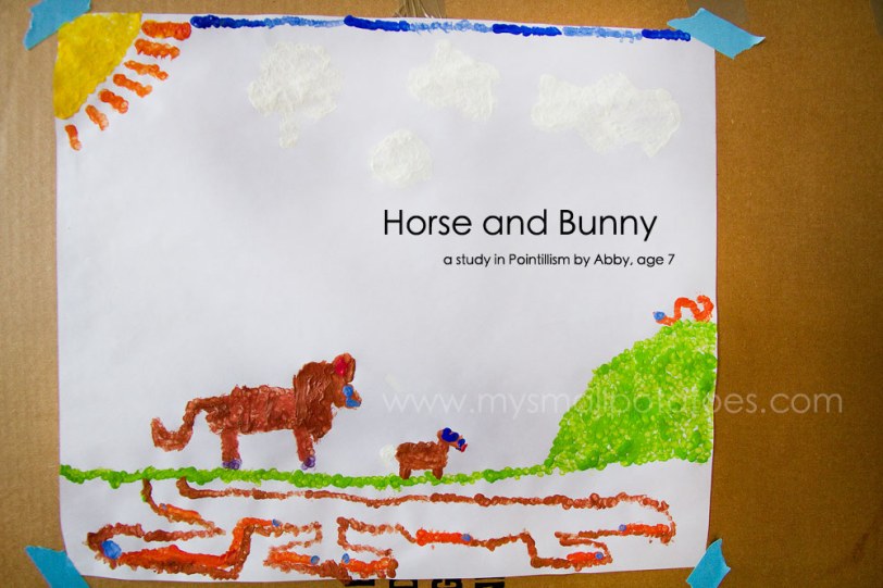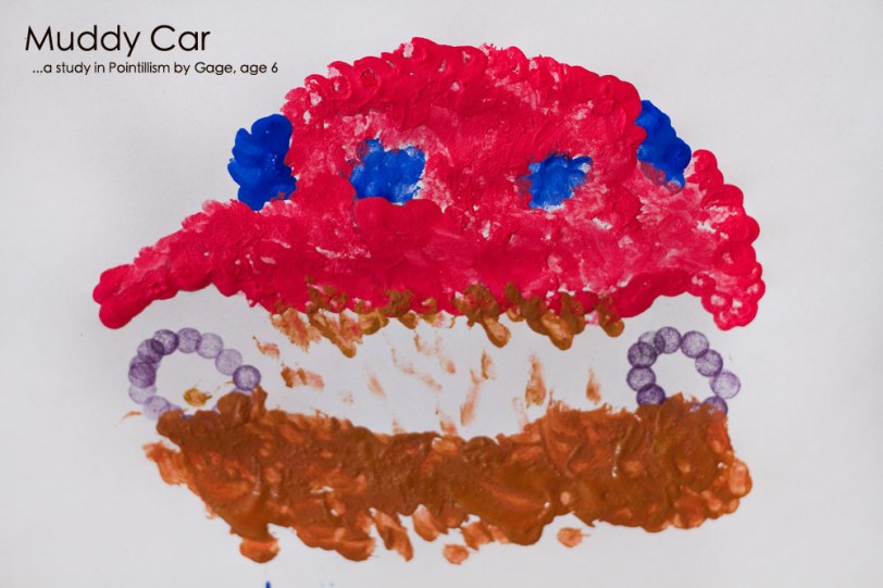 The two big kids worked on their Pointillism masterpieces for 2 whole hours…They were so proud of their work, they wanted to take it to school for Show and Tell.