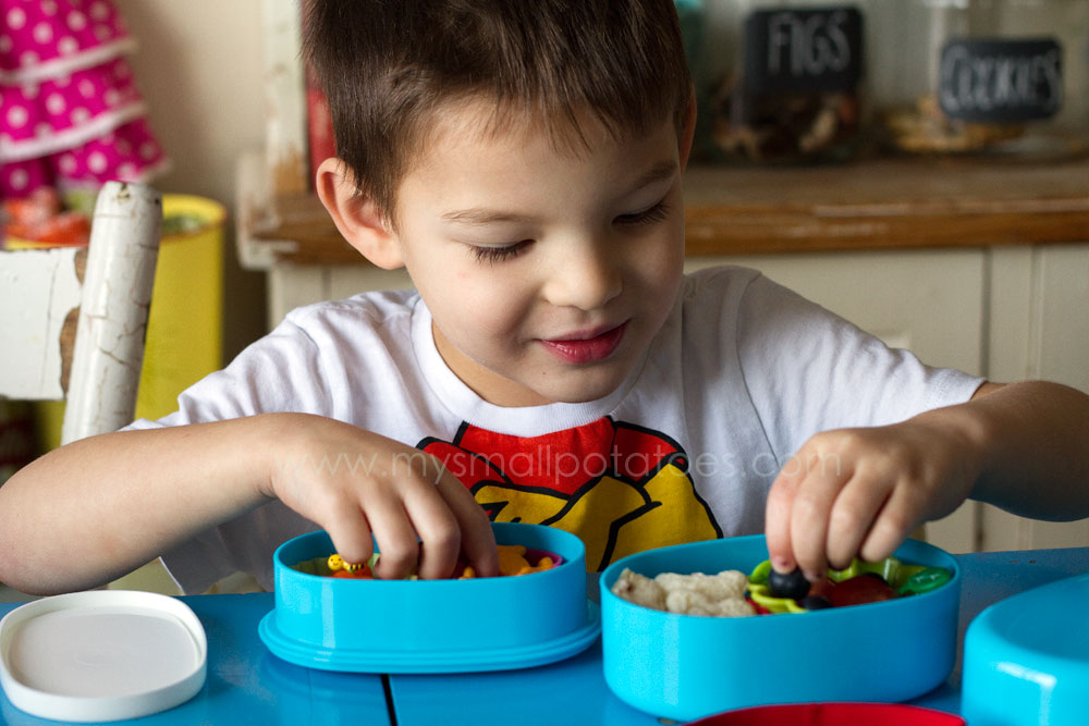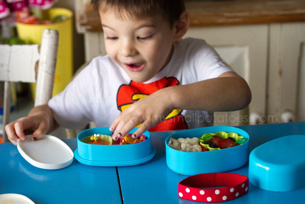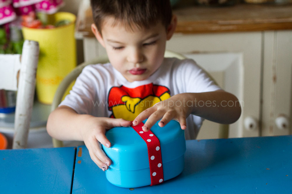 I’d like you to just sit back and enjoy these next three images, as 3yr old Little R experiences his very first bento lunch. This one we just made, in fact…