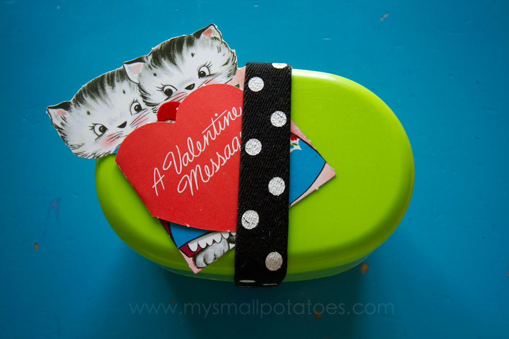 He loves cats, is not such a big fan of pink, and he loves chocolate. I tried to tailor his bento to fit these requirements, but still make it “Valentine-y”…