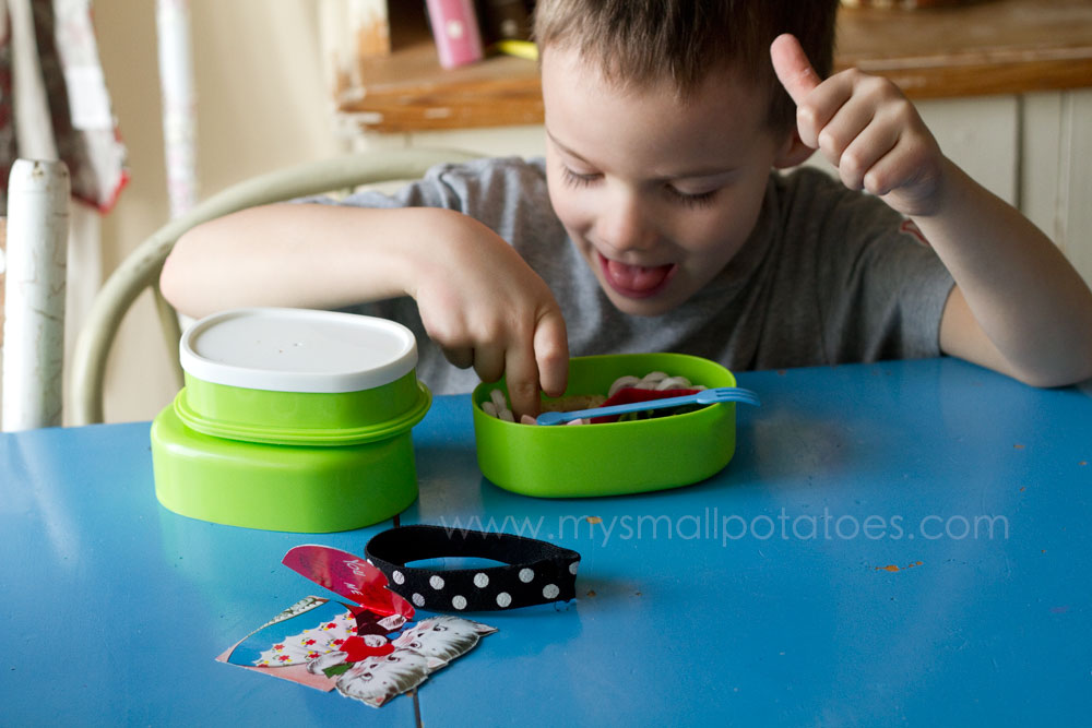 wonderful 🙂 btw I was wondering, how do you manage that the contents remain the same after, lets say 4-5 hours and some carrying around? Is there a special bag for the bento snacks, so the whole box stands still and the right side up the whole time?