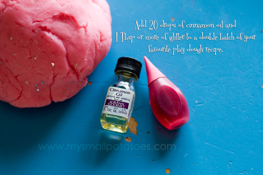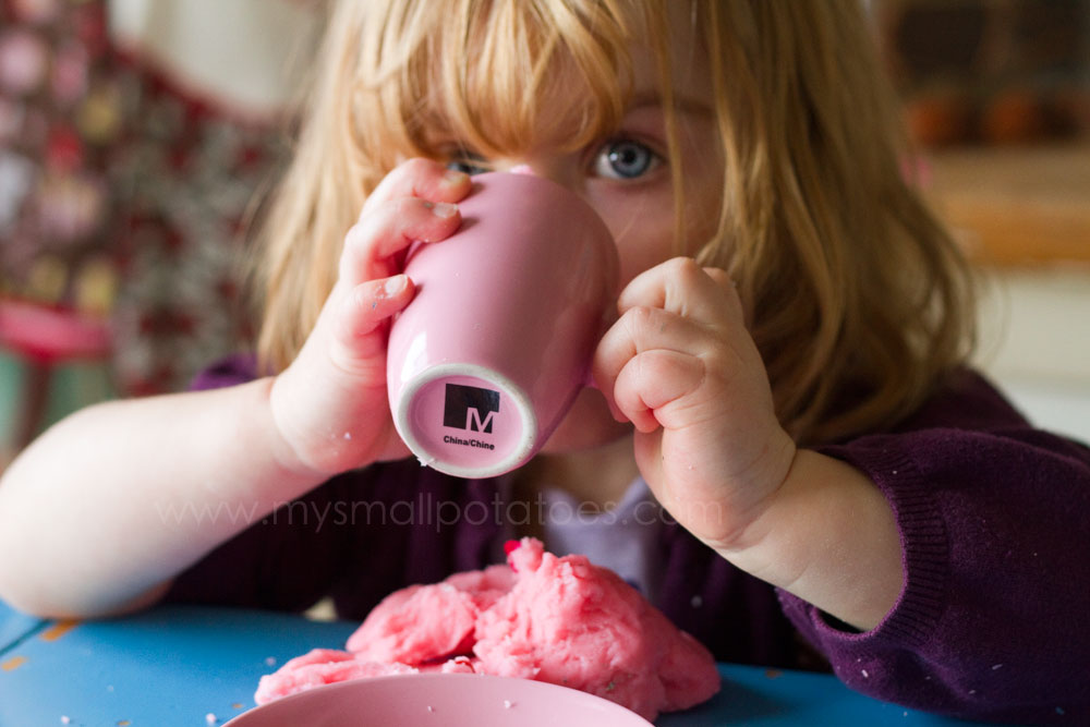 To start up your own cafe at home just make up a batch of your favourite play dough and colour it pink! Here is a link to OUR favourite recipe. To add a bit of sensory fun and aromatherapy, add some cinnamon oil and sparkles!