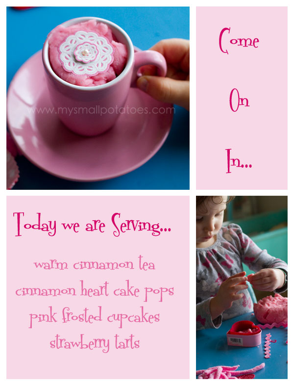 It’s here! LOVE DAY!! And we’ve been baking and pouring cups of cinnamon tea for all of our small customers! The smalls have been playing in our Valentine Cafe and they LOVE it.