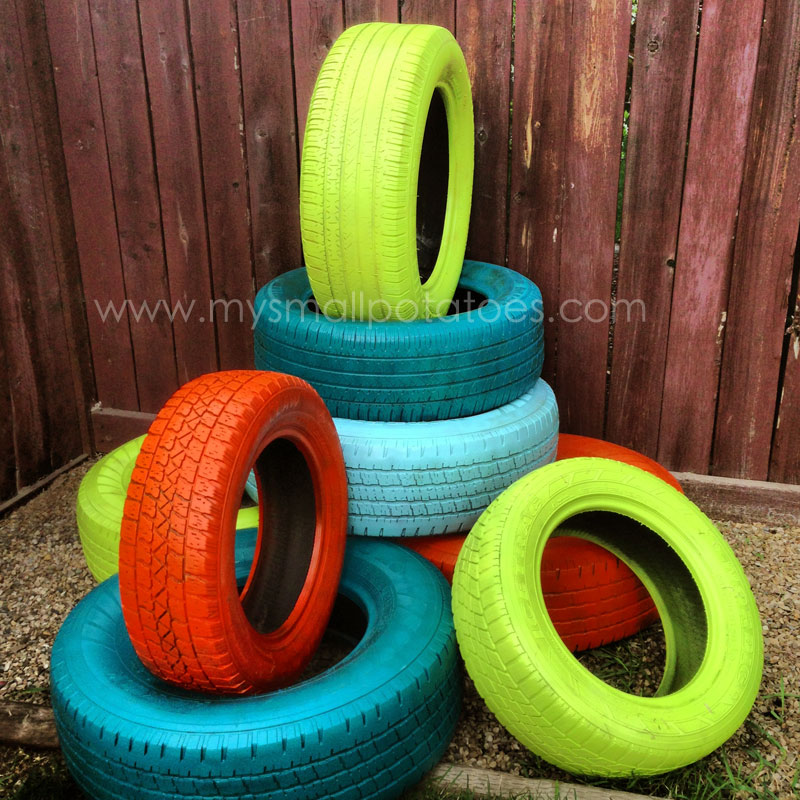 Love the idea of painted tired as part of an obstacle course.