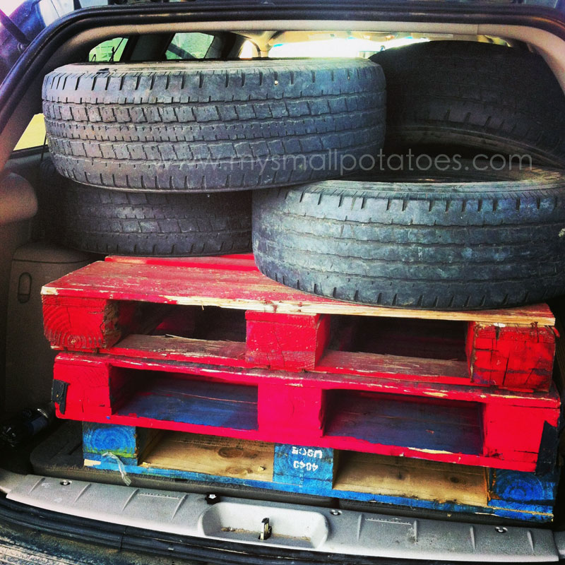 And so began the hunt for free, used up tires. I started with 4 really big ones which were given to me by a really great family I know.