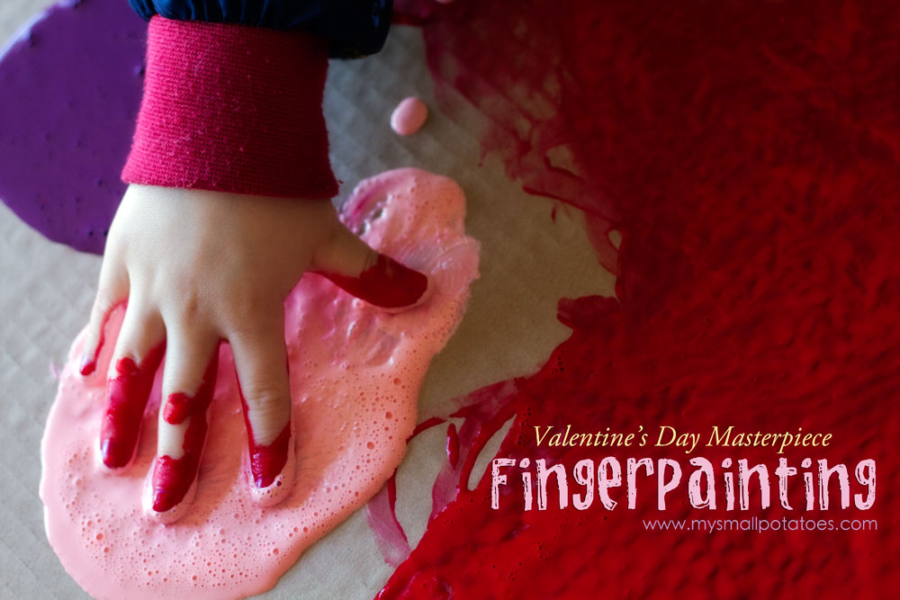 Here at Small Potatoes, we’ve kept Valentine’s Day rather simple. There is no glitter, no hearts, no chocolate play dough, and pink spaghetti. We went back to the basics with good ol’ finger paint.