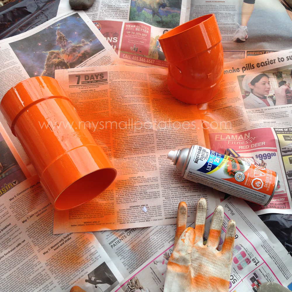 I spray painted the PVC tubes to become tunnels for the little cars…