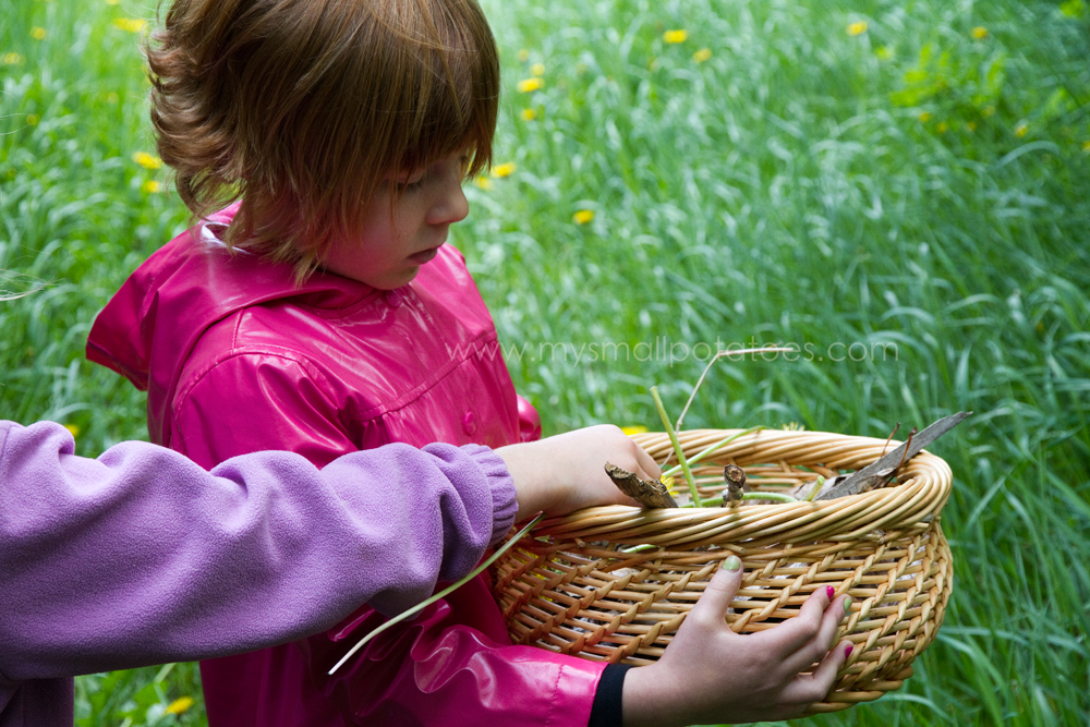 The children were very keen on using only natural elements in our bug hotel, so we went for a walk in the woods to gather the necessary supplies.