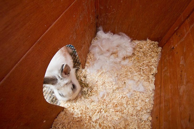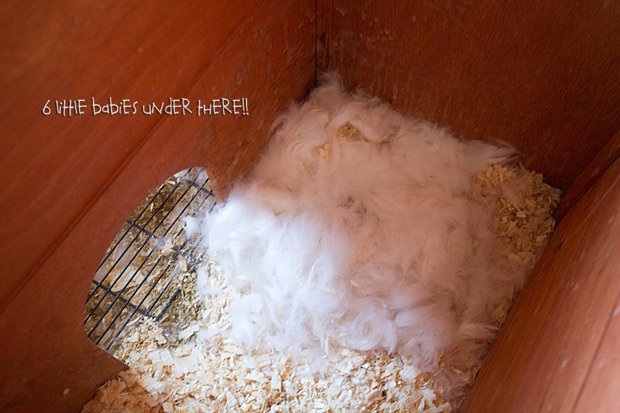 On a Friday afternoon in April, our Mumma LucyLoo started to pull the fur from her belly to make a nest for her babies. LucyLoo is a lionhead rabbit and not a very big one. She was lucky to have a lot of fur from the cold winter, because she needed a lot of it to keep her babies warm.